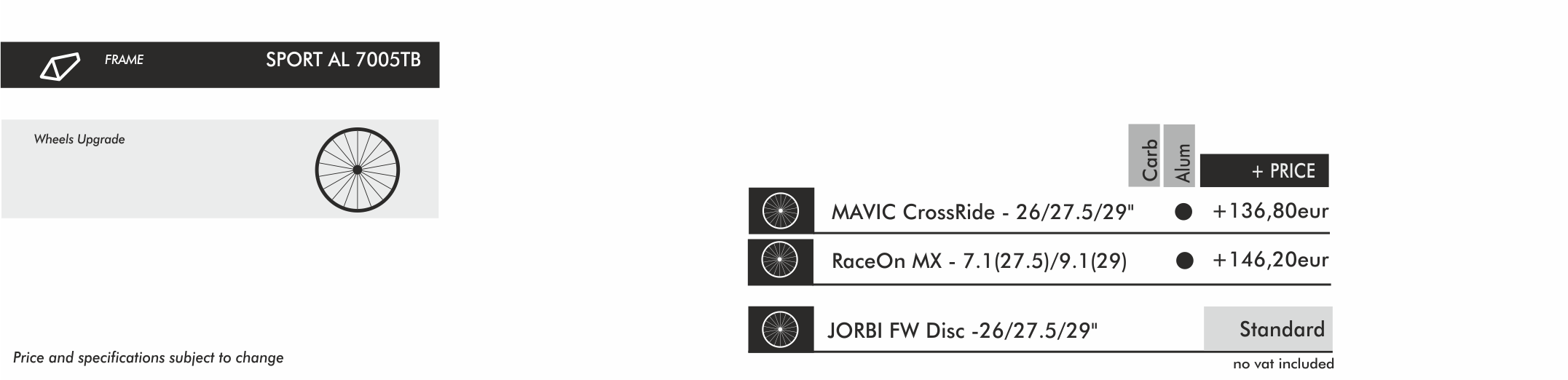 Sport Ideal bike for all those who want to start in sports, this is undoubtedly the best choice when the motto is leisure. Frame built of aluminum alloy 7005, it is available in 3 versions for 29", 27.5" and 26" wheels and in 4 different sizes for each, allowing everyone to use it without limitations of stature or age.