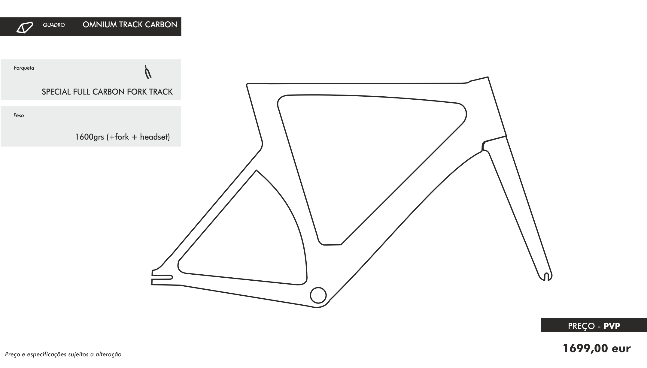 Omnium Carbon As its name indicates, we are facing the king of the Track, a frame used by our National Team that shown in its first year of competition surprising results at the controls of Ivo Oliveira and company in all the International competitions in which they have participated. Frame built in carbon composite T800 mounts a special fork Full Carbon Tapered 1 "1/8 x 1.5" is available in 4 different sizes being its stiffness and aerodynamics its key points of its success in hitting records.